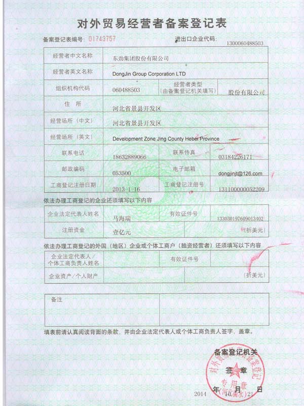 • 2015-11-12本公司成功注冊了“東勁”商標